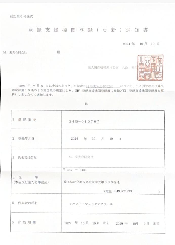Registered Support Organization License No : 24登-010767